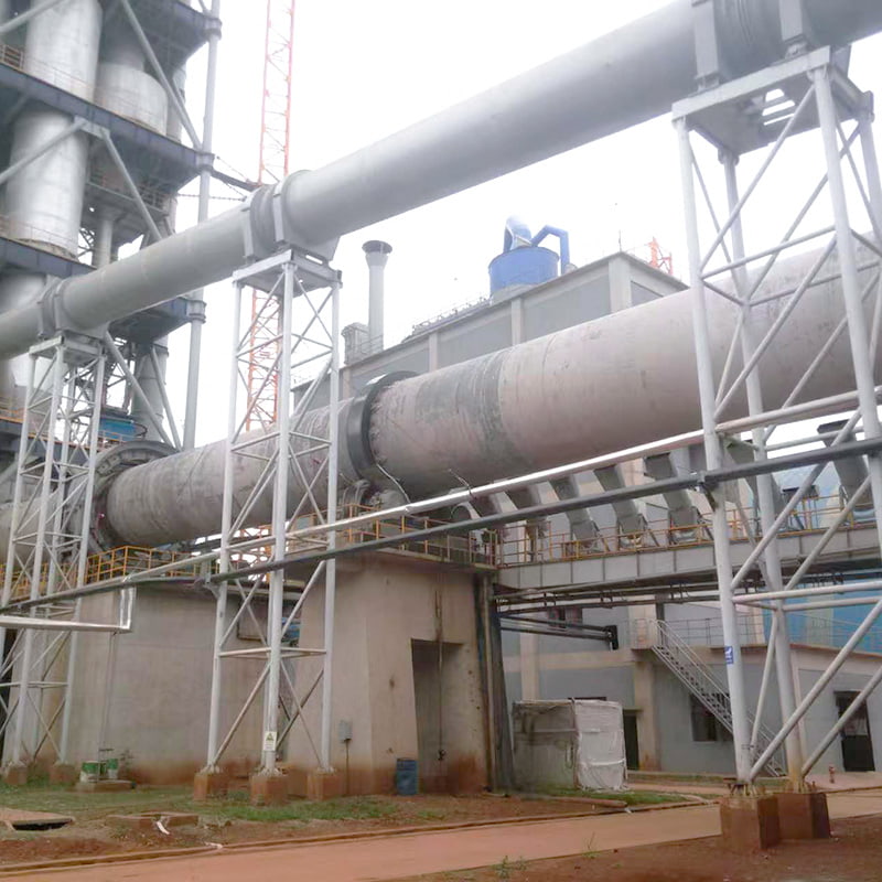 Когда каолиновая вращающаяся печь начинает работу, каолиновое сырье поступает в барабан из хвостовой части печи через подогреватель. Из-за наклонной установки барабана и медленного вращения каолиновый материал совершает сложное движение, как кувыркаясь в круговом направлении, так и перемещаясь в осевом направлении от верхнего конца к нижнему. Каолиновый материал разлагается и прокаливается внутри печи, а клинкер выгружается из головки печи (нижнего конца) и поступает в охладитель.